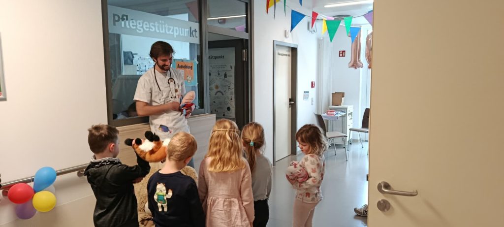 Jedes Kind sollte zum Besuch ein Kuscheltier mitbringen, zu dem es sich vorher eine Krankengeschichte überlegt hat.